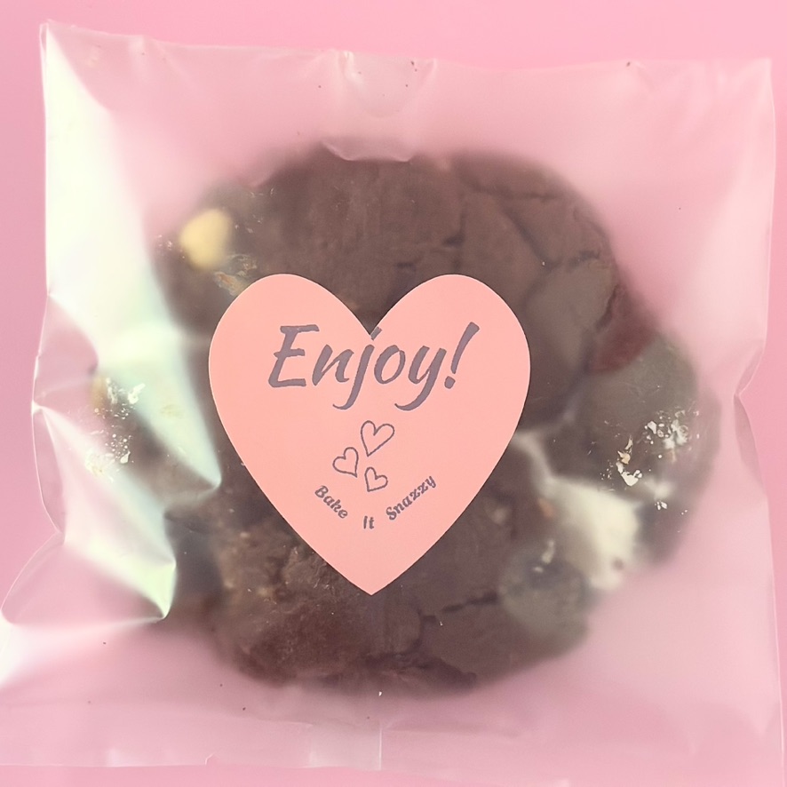 Our cookies are handmade with fresh quality ingredients. Our cookies are a little over quarter-pound each in weight (4 oz / 113g). Cookie lovers can enjoy the whole thang…Or share it!